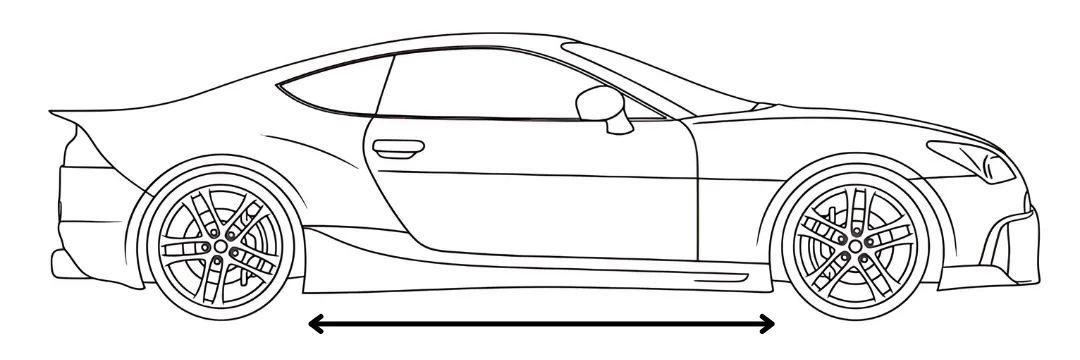 Step 1: Measure the distance between the front and rear tire treads, ensuring the measuring tape is 3″ above the ground.