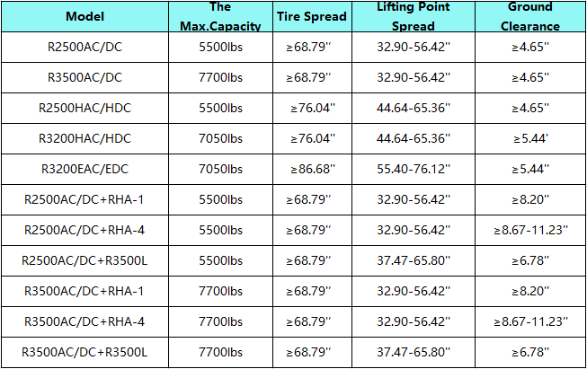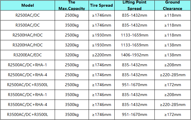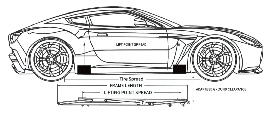 Vehicles with a wheelbase exceeding 3000mm have fixed lifting points and need to use the E series with extension frame or choose the HL series.